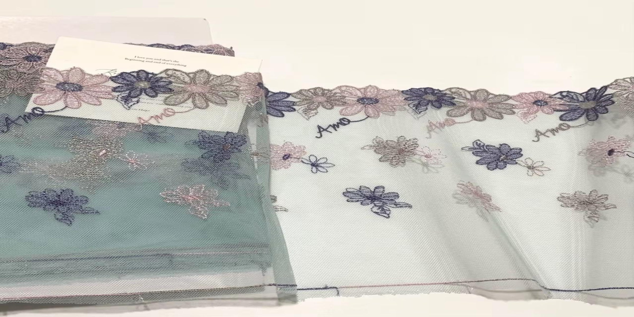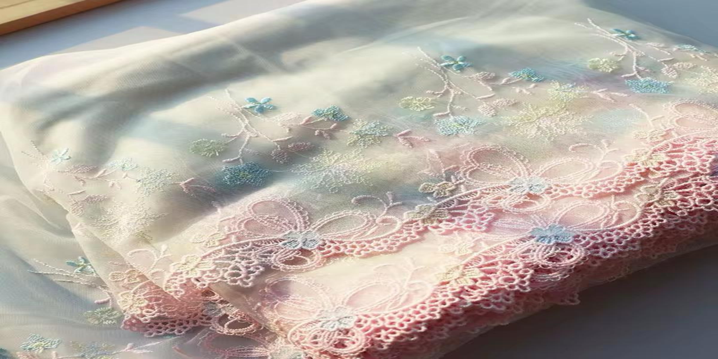 Encaje bordado tela exquisita multicolor en tonos pastel, doble borde