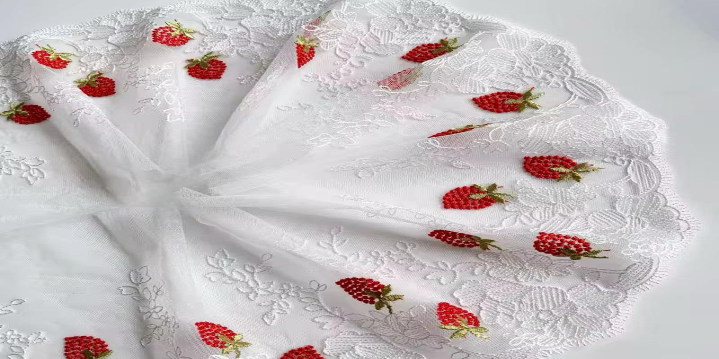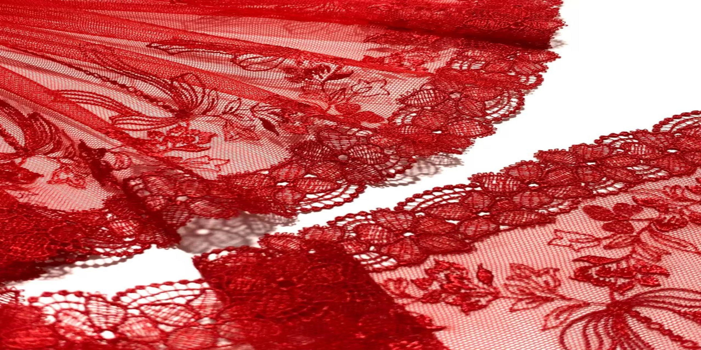 Encaje Floral Rojo en Malla de 33 cm de ancho.